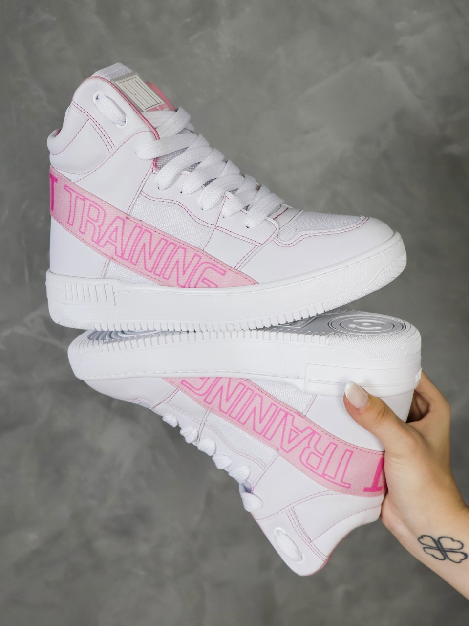 – Sintético Esportivo (Vegano) nas Cores Branca, Color e Lilás.